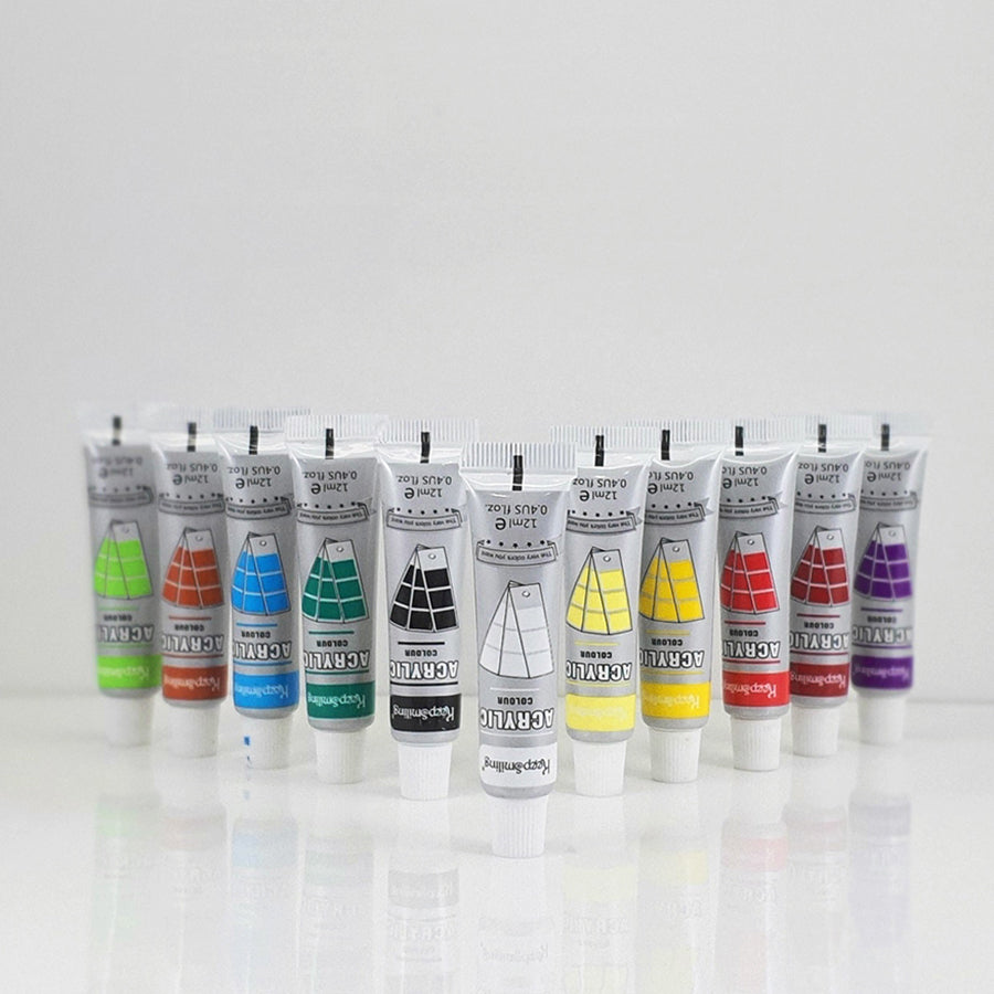 Keep Smiling 12-Color Acrylic 12 ml Paint Set with Brush – High-Quality Art Supplies for Artists