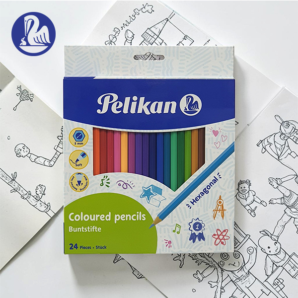 The Pelikan “Buntstifte” (Colored Pencils) set offers a spectrum of 24 bright, intense colors. Unlike standard pencils, these feature an ergonomic triangular shape, which naturally encourages the correct grip and prevents hand fatigue during long coloring sessions.