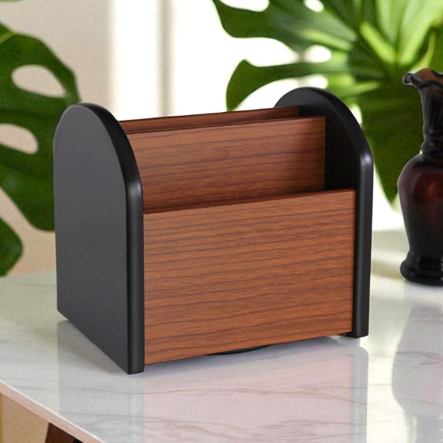 Rotating Wooden Desk Organizer – Compact Stationery Holder